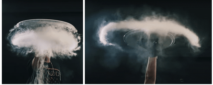 Объясняется это так – в результате быстрого рывка позади образуется турбулентный вихрь, который во время медленного возвратного движения продолжает по инерции двигаться вперед и толкает лодку сзади. Это подтверждается наблюдаемым при помощи дыма эффектом во время единичного движения пластины. После остановки пластины вихрь под ней продолжает движение в том же направлении и догоняя отражается в стороны, увеличиваясь в диаметре. Изображение