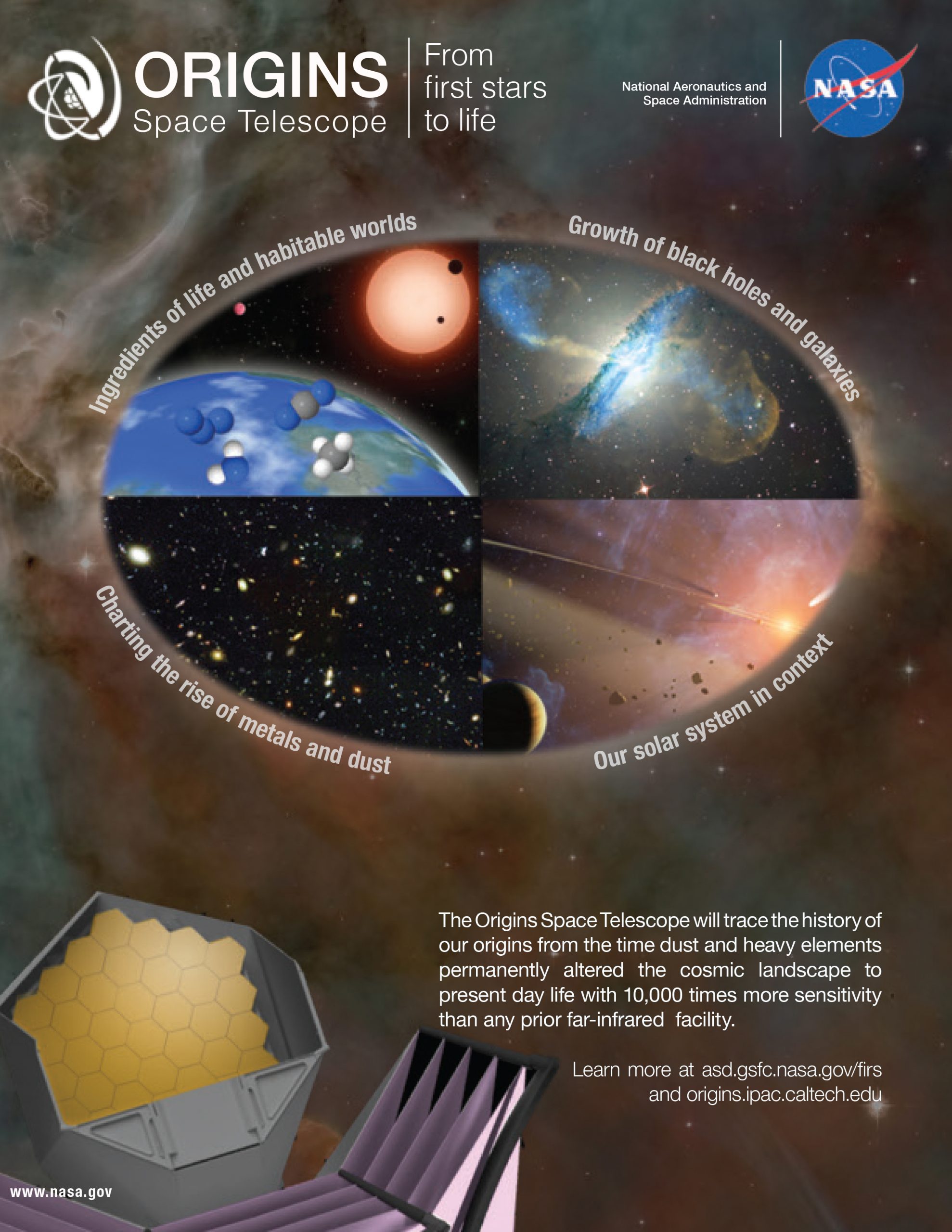 С этой целью в конце 2015 года NASA заказало четыре исследования концепций крупных миссий для рассмотрения в Десятилетнем обзоре астрономии и астрофизики 2020 года («Astro2020», под председательством профессоров Фионы Харрисон и Роба Кенникатта). Эти исследования концепции крупных миссий в совокупности представляют собой мечты многих тысяч людей по всему миру. Хотя они формально «соревнуются» между собой, эти концепции в совокупности формируют единое видение новой эпохи открытий.