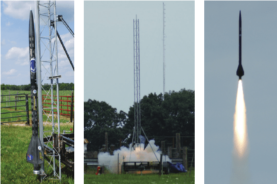 Ракета из композитного материала, длиной 2.7 м, взлетела на 396м, развив тягу в 295 кг.