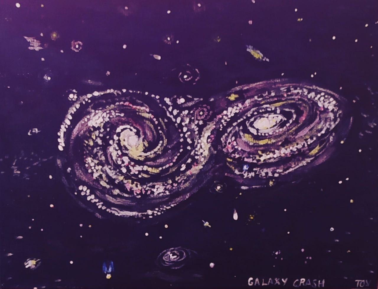 За розрахунками вчених, зіткнення галактик Андромеди та Чумацького Шляху відбудеться через 4,5 млрд років. Але в масштабах Всесвіту такі речі - явище звичне, в якому можна навіть віднайти відповідь на найголовніше запитання. Акрил. Розмір 24 х 18 см.