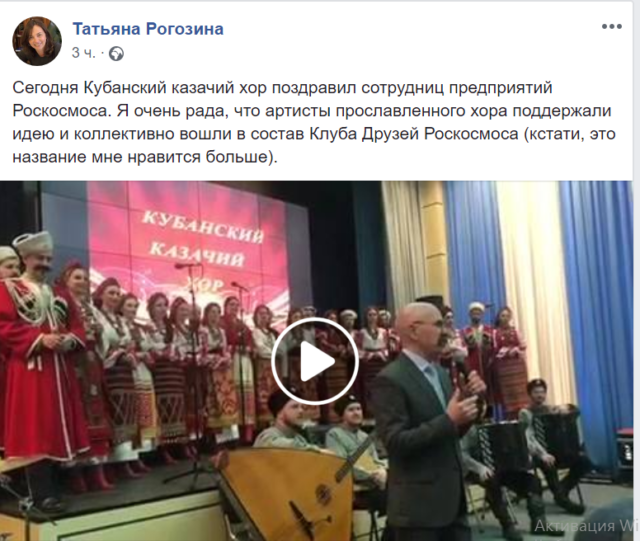 UPD: а вот через некоторое время после публикации этой статьи был удален пост с Кубанским хором, поддержавшим идею Татьяны Рогозиной, к сожалению видео недоступно, но скрин у нас есть: