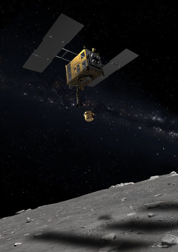 Итак, первые образцы с поверхности (скорее всего) успешно взяты. Следующий этап – взять подповерхностную пробу грунта. Для этого астероиду Рюгу придётся обзавестись новым кратером.
