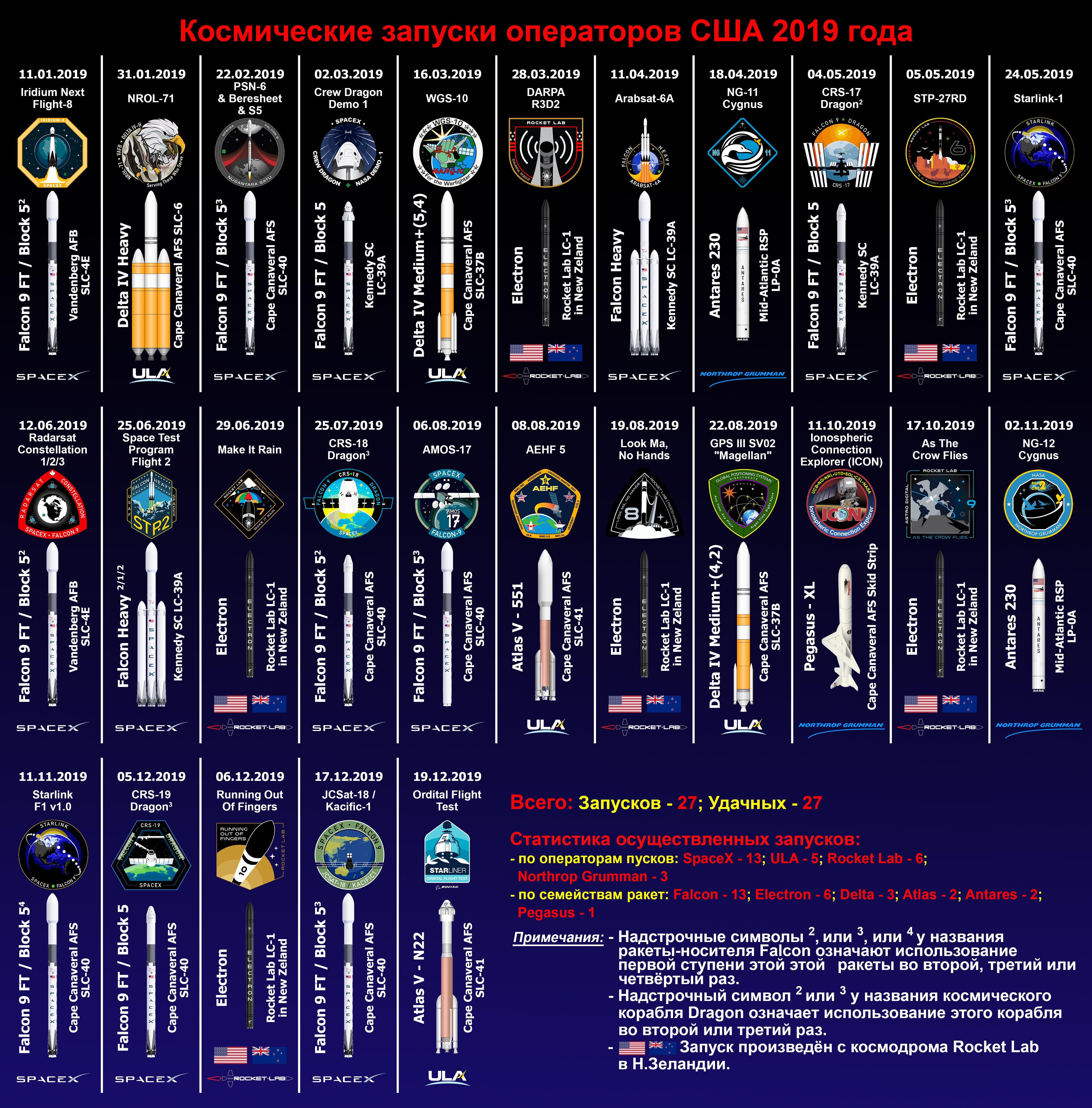Интересно, что из 27 запусков 19 осуществлены SpaceX и RocketLAB. Вот они, современные передовики космического производства!