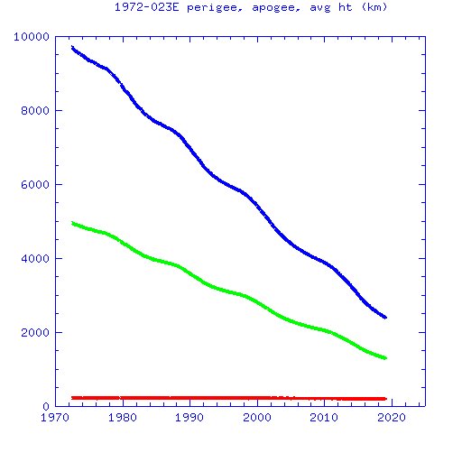 Вот график, показывающий изменения средней высоты орбиты всех трех объектов с момента запуска: