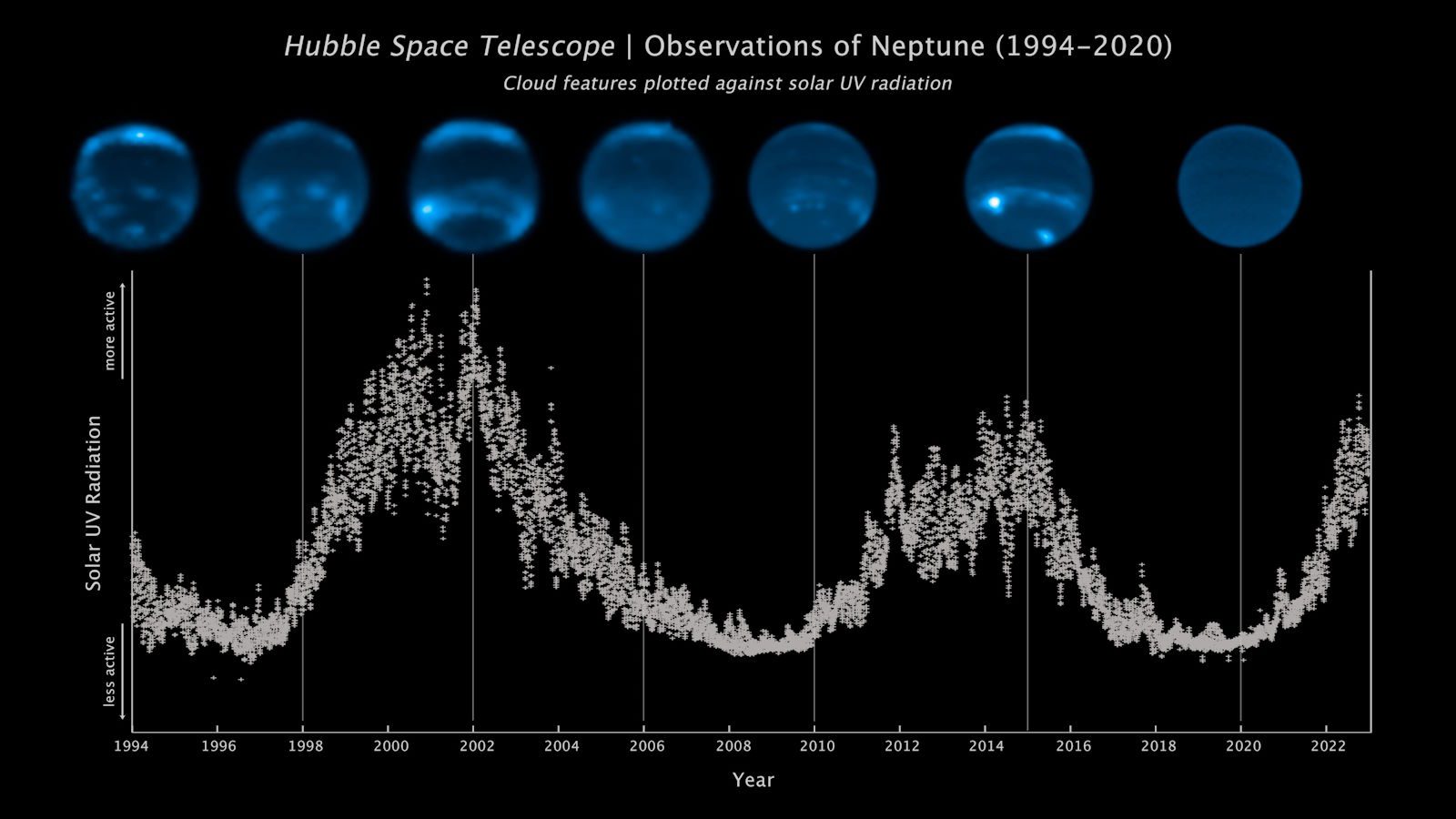 Вивчивши дані космічного телескопу «Габл» та обсерваторії Кека, вчені виявили цікаву закономірність у з’явленні хмарного покриву крижаного гіганта.