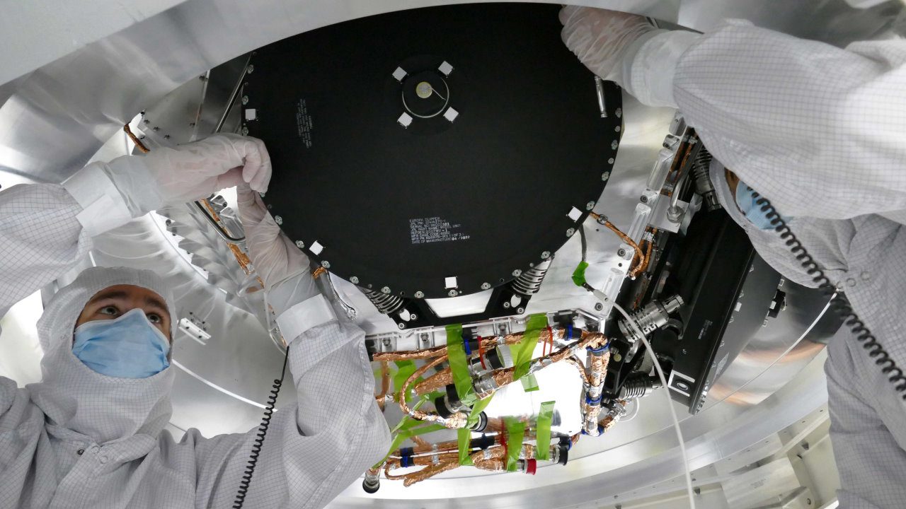 Инженеры Лаборатории реактивного движения приступают к установке научных инструментов и другого лётного оборудования.
